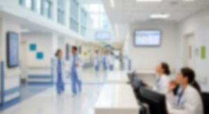 Blurred,Image,Of,Healthcare,Workers,In,Hospital,Corridor,Doctors,Walking