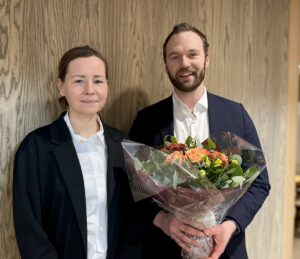 – Sveinung er en dyktig kollega, som er grundig, strukturert og god i møte med klienter, sier leder for avdeling fast eiendom, Kathrine Lien Mjell. Han er også en kjekk kollega som tar stort sosialt ansvar og bidrar positivt i hverdagen.