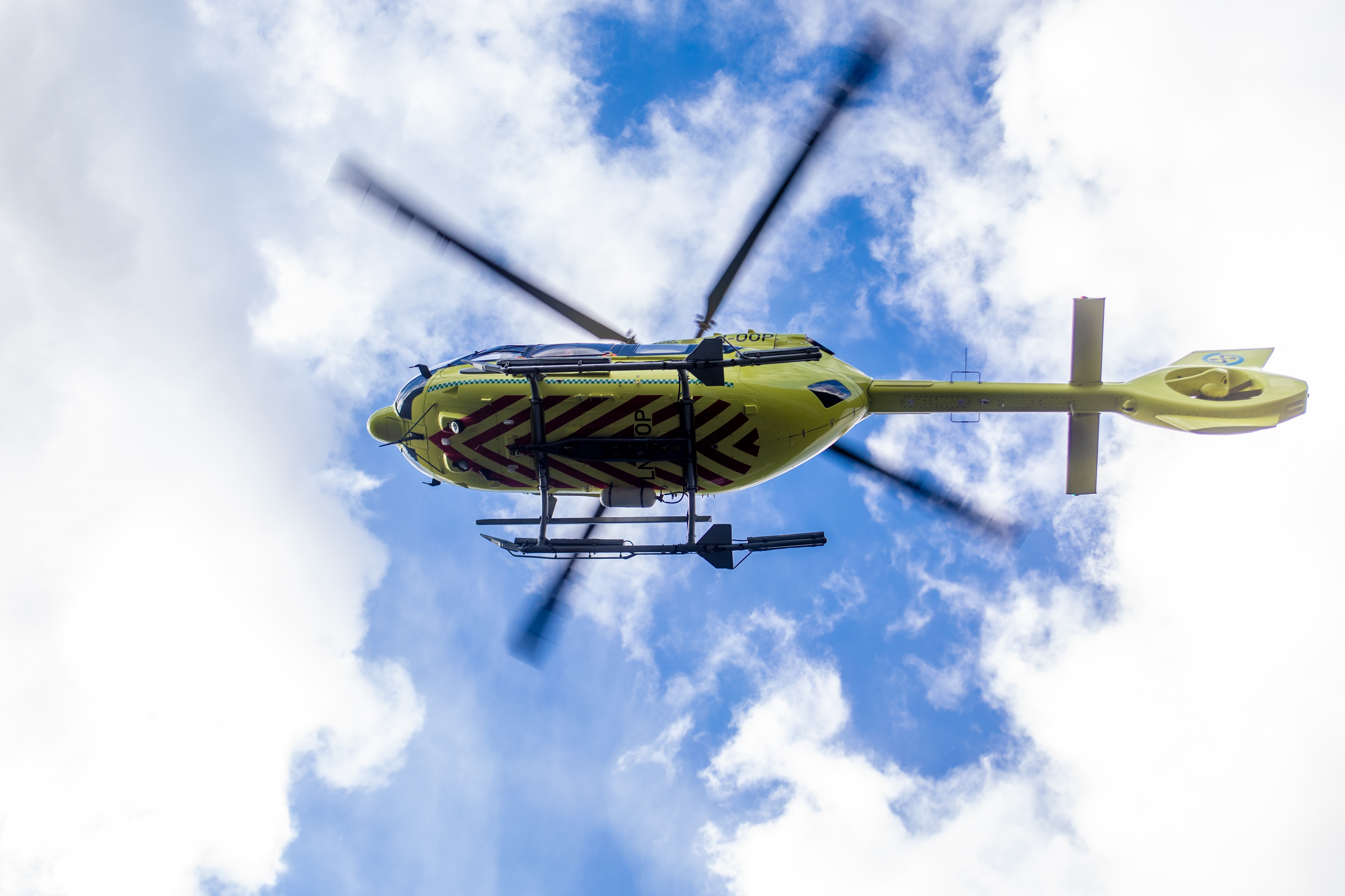 Yellow,Ambulance,Helicopter,In,Cloudy,Sky